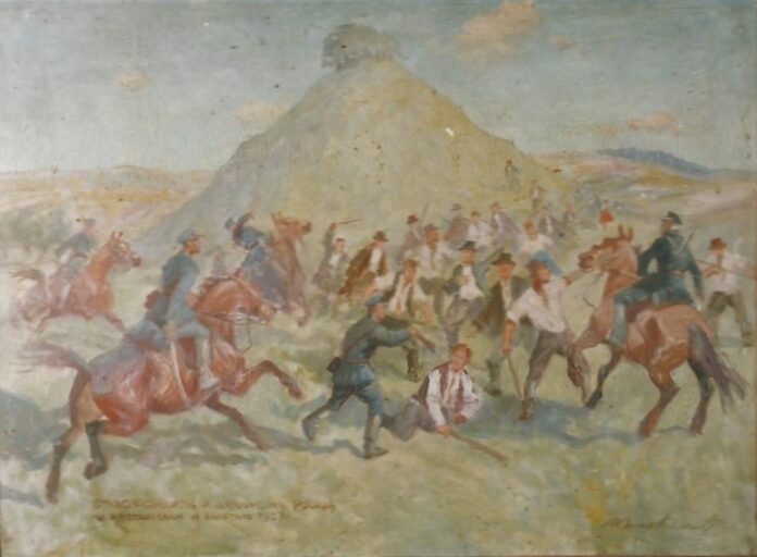 Starcie chłopów z policją w Racławicach w kwietniu 1937 (obraz Romana Breitenwalda)
