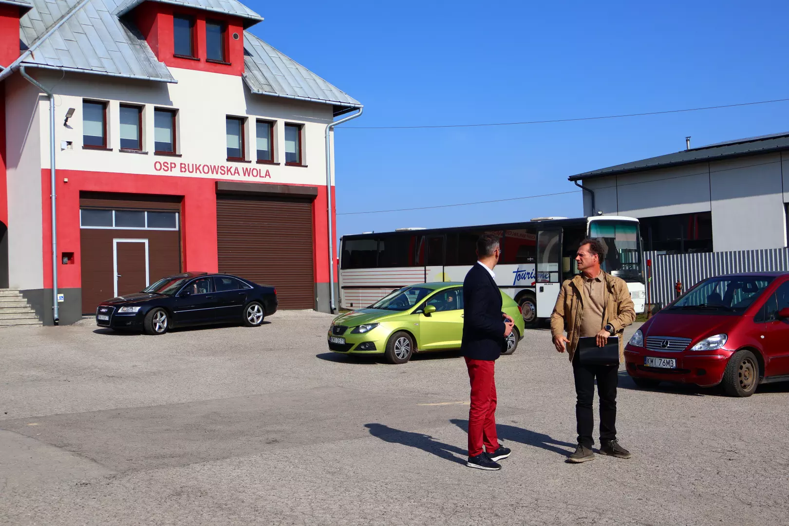 Przekazanie placu budowy odbyło się 11 marca. W spotkaniu uczestniczył Dariusz Marczewski Burmistrz Gminy i Miasta Miechów, Radny Rady Miejskiej w Miechowie Stanisław Pietras, będący jednocześnie prezesem OSP Bukowska Wola oraz Sołtys tej miejscowości Sławomir Wilk. Obecni byli także: Iwona Drożdż – Naczelnik Wydziału Inwestycji i Ochrony Środowiska Urzędu Gminy i Miasta oraz Dyrektor Szkoły Podstawowej w Bukowskiej Woli Ewa Król.